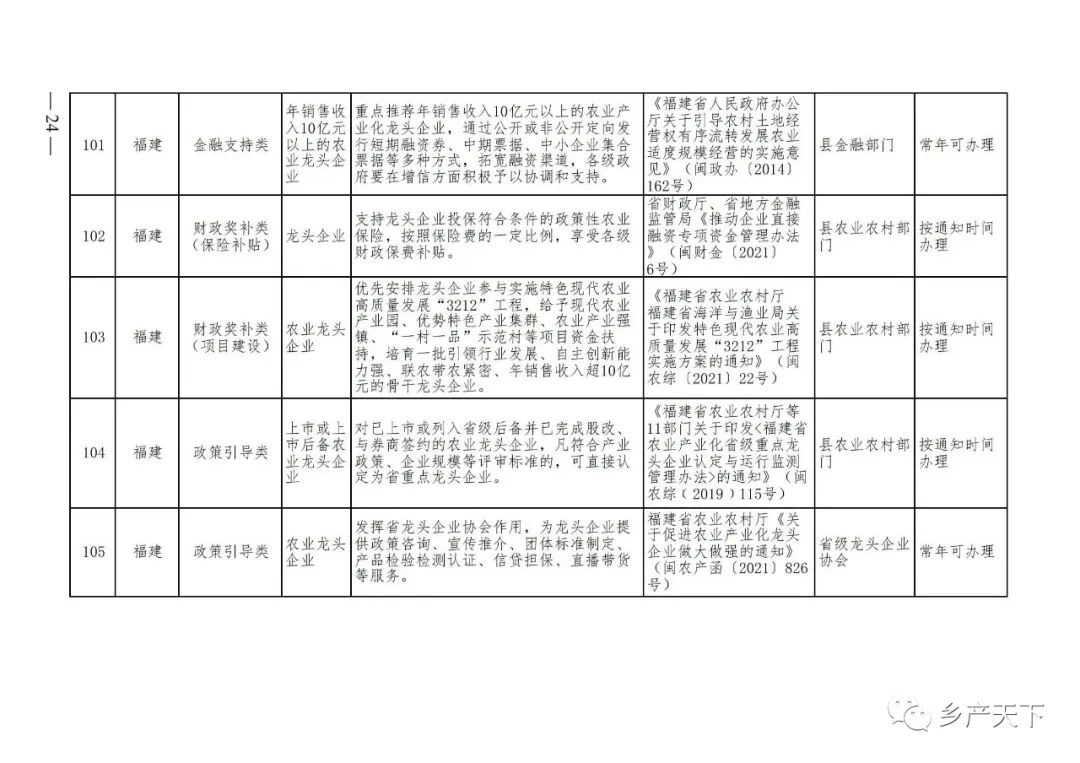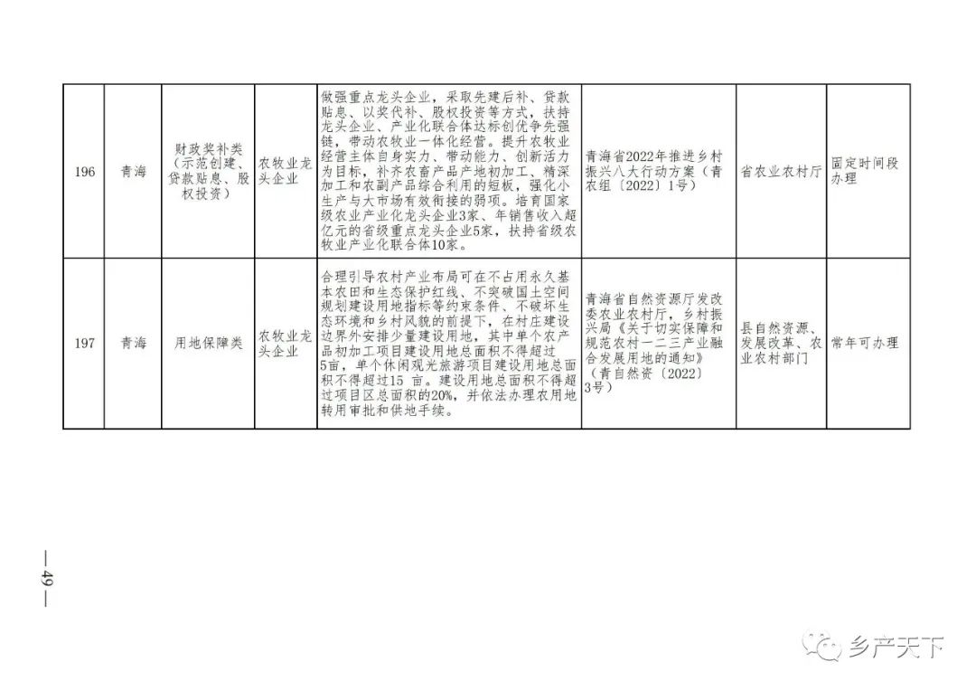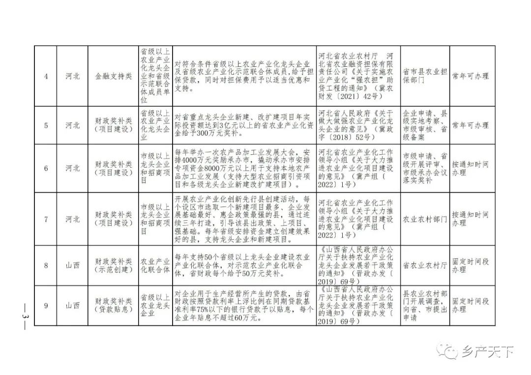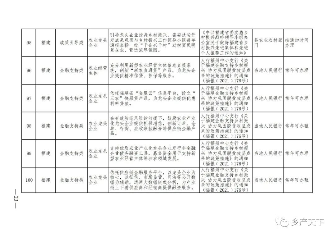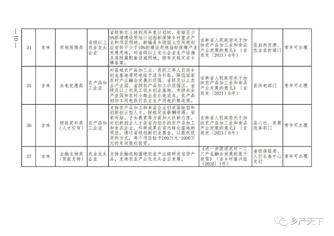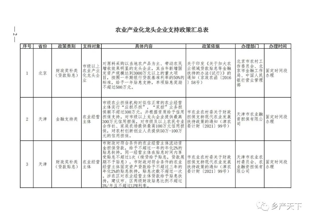 農(nóng)業(yè)產(chǎn)業(yè)化龍頭企業(yè)支持政策清單